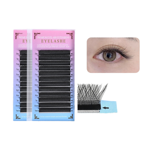 Bandeja de pestañas de Cachemira de injerto grueso de alta densidad de fábrica L/M, Etiqueta Privada, extensiones de pestañas postizas naturales DIY, venta al por mayor
