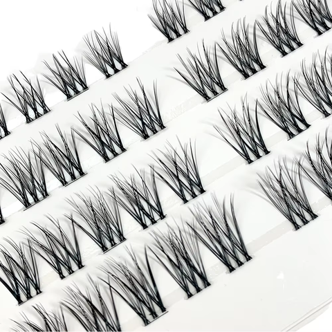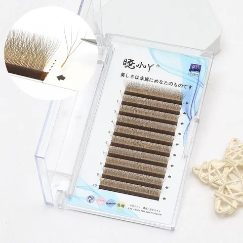 Venta al por mayor Ultra suave 0,05 caramelo trébol de cuatro hojas tipo Y YY pelo 4D trébol 12 filas marrón grueso injerto extensiones de pestañas