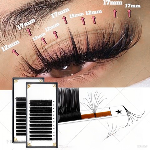 Extensiones de pestañas rizadas largas y delgadas suaves naturales de moda nueva técnica de injerto de raíz múltiple única para salones de belleza
